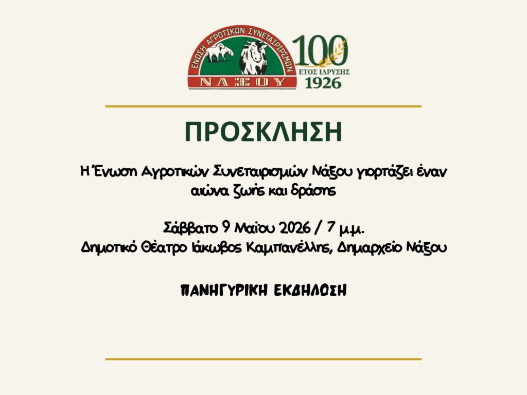 100 χρόνια Ένωση Αγροτικών Συνεταιρισμών Νάξου