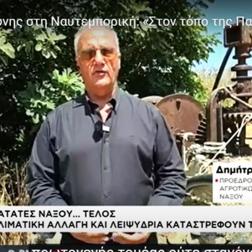 Σοβαρότατα έχει επηρεαστεί η παραγωγή της Πατάτας Νάξου από την έλλειψη νερού που πλήττει τη Νάξο, όπως τόνισε, ξανά, ο Πρόεδρος της Ένωσης Αγροτικών Συνεταιρισμών Νάξου, Δημήτρης Καπούνης, σε τηλεοπτική του συνέντευξη (σ.σ. αυτή τη φορά στην «Πρωινή Ενημέρωση» του ΣΚΑΪ). Μάλιστα, δεν δίστασε να προβλέψει ότι θα μπει… ταφόπλακα στο περίφημο προϊόν Προστατευόμενης Γεωγραφικής Ένδειξης του νησιού μας, καθώς, όπως τόνισε, αυτό δεν πρόκειται να φυτευτεί κατά τη φθινοπωρινή […]