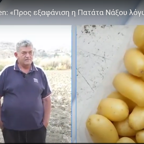 Λόγω της παρατεταμένης λειψυδρίας, η παραγωγή της φημισμένης Πατάτας Νάξου Π.Γ.Ε. ήταν φέτος κατά πολύ μειωμένη και μάλιστα το προϊόν δεν θα καλλιεργηθεί τον Αύγουστο και τον Σεπτέμβριο όπως γινόταν συνήθως, ενώ από τον Οκτώβριο δεν θα υπάρχει στα ράφια… Ο Alpha παρουσίασε ρεπορτάζ για το θέμα στο κεντρικό του δελτίο ειδήσεων, φιλοξενώντας δηλώσεις του Προέδρου, Δημήτρη Καπούνη και του Διαχειριστή Πατάτας της Ένωσης Αγροτικών Συνεταιρισμών Νάξου, Δημήτρη Βενιέρη, όπως […]