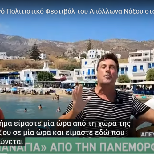 Γραμμή πήγε σήμερα και… άραξε στον Απόλλωνα στη Νάξο ο Χρήστος Νέζος! Στον «αέρα» της εκπομπής «Newsroom» του ΣΚΑΪ ο αγαπημένος δημοσιογράφος και παρουσιαστής της τηλεόρασης είπε τα χρόνια πολλά για το Δεκαπενταύγουστο και έπειτα αναφέρθηκε στο 1ο Καλοκαιρινό Πολιτιστικό Φεστιβάλ του Απόλλωνα το οποίο ξεκινά αύριο, με αποκλειστικό του χορηγό την Ένωση Αγροτικών Συνεταιρισμών Νάξου! Στην κάμερα μίλησε και ο Σταμάτης Ανδρής, που τόνισε ότι το Φεστιβάλ φιλοδοξεί να πραγματοποιείται κάθε καλοκαίρι, να […]