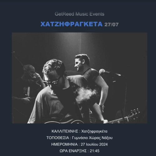 ΚΑΛΛΙΤΕΧΝΗΣ : Χατζηφραγκέτα ΤΟΠΟΘΕΣΙΑ : Γυμνάσιο Χώρας Νάξου ΗΜΕΡΟΜΗΝΙΑ : 27 Ιουλίου 2024 ΩΡΑ ΕΝΑΡΞΗΣ : 21:45 Οι Χατζηφραγκέτα ξεκίνησαν ως μουσικό ντουέτο στην Αθήνα το 2007 αποτελούμενο από τους Βαγγέλη Χατζηγιάννη και Πάνο Φραγκιαδιάκη. Τραγουδούν σκονισμένες μελωδίες για χαμένες αγάπες και γκρεμισμένες ζωές πάντα με το δικό τους ιδιαίτερο τρόπο όπου τους καθιστά τόσο […]
