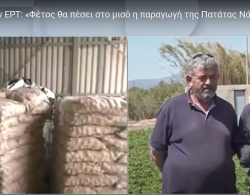 Μειωμένη θα είναι φέτος η παραγωγή της περίφημης και πεντανόστιμης Πατάτας Νάξου Π.Γ.Ε., όπως τόνισαν ο Πρόεδρος της Ένωσης Αγροτικών Συνεταιρισμών Νάξου, Δημήτρης Καπούνης και ο Ναξιώτης πατατοπαραγωγός, Στέλιος Βαθρακοκοίλης, μιλώντας στο «News Room» του ERT News. «Λόγω της κλιματικής κρίσης και της λειψυδρίας εδώ στη Νάξο, η φετινή παραγωγή της Πατάτας Νάξου δεν θα […]