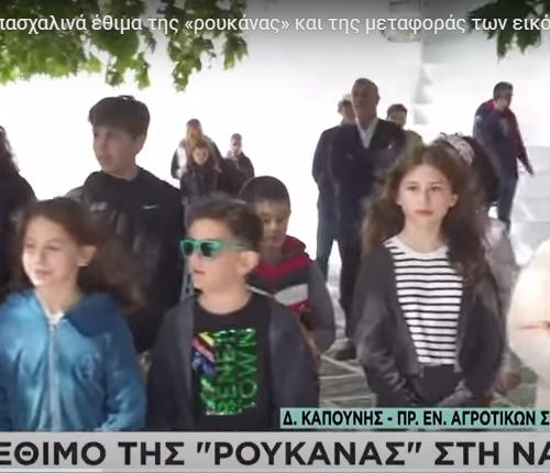 Οι «Αταίριαστοι» του ΣΚΑΪ συνδέθηκαν με την Κόρωνο και έμαθαν για το έθιμο της «ρουκάνας» αλλά και για εκείνο της μεταφοράς των εικόνων από το Αργοκοίλι στο πανέμορφο ορεινό χωριό της Νάξου, τα οποία σήμερα, Μεγάλη Πέμπτη, αναβιώνουν! Μιλούν, στην κάμερα της εκπομπής, ο Πρόεδρος του χωριού και του Πολιτιστικού Συλλόγου του, Νίκος Χουζούρης, καθώς επίσης και η Στέλλα Μανδηλαρά. Χρέη… ρεπόρτερ εκτέλεσε ο Πρόεδρος της […]