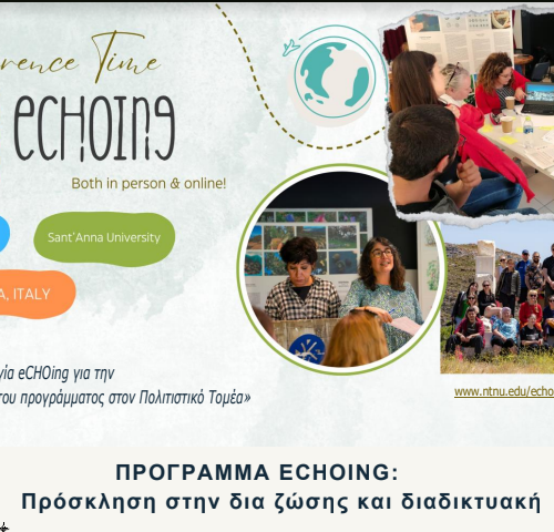 ΠΡΟΣΚΛΗΣΗ ΣΤΟ ΣΥΝΕΔΡΙΟ ΣΤΗΝ ΠΙΖΑ Με μεγάλη χαρά η ΟΣΥΓΥ σας προσκαλεί, στις 17 Απριλίου 2024, στο συνέδριο eCHOing, το οποίο θα πραγματοποιηθεί στην Πίζα της Ιταλίας. Το συνέδριο εκτός από δια ζώσης θα μεταδοθεί δωρεάν και διαδικτυακά, δίνοντας έτσι την ευκαιρία σε όσες/ους επιθυμούν να παρακολουθήσουν και τις εκπροσώπους της Ομοσπονδίας Συλλόγων Γυναικών Κυκλάδων […]