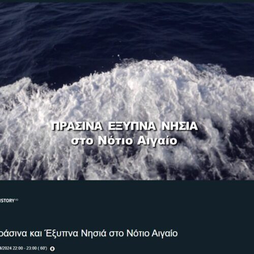Το COSMOTE HISTORY προβάλλει τα Πράσινα & Έξυπνα Νησιά του Ν. Αιγαίου Τα επιτυχημένα επιχειρησιακά πράσινα μοντέλα που υλοποιούνται στην Περιφέρεια Νοτίου Αιγαίου και συγκεκριμένα στα νησιά Ρόδο, Αστυπάλαια, Σύρο, Χάλκη και Τήλο, προσελκύοντας κολοσσούς των νέων τεχνολογιών και των επιχειρήσεων, παρουσιάζονται στο ντοκιμαντέρ, που προβάλλεται από το COSMOTE HISTORY, σήμερα, 22 Aπριλίου 2024, Ημέρα […]
