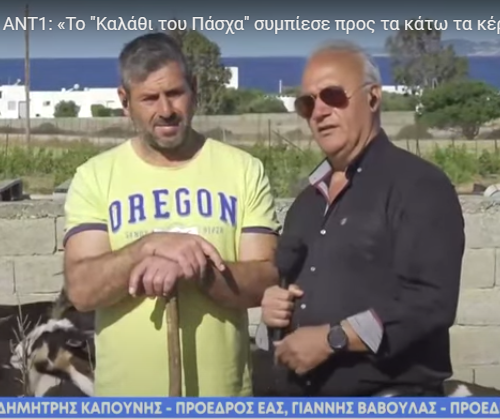 Για τα κέρδη των κτηνοτρόφων από τη διάθεση των αμνοεριφίων τους εν όψει του Πάσχα αλλά και για τις τιμές που θα βρει ο καταναλωτής αυτά τα προϊόντα μίλησαν σε ΕΡΤ, Mega και ΑΝΤ1, ζωντανά από το νησί μας, ο Πρόεδρος της Ένωσης Αγροτικών Συνεταιρισμών Νάξου, Δημήτρης Καπούνης και ο Ναξιώτης κτηνοτρόφος, Γιάννης Βάβουλας. Ο […]