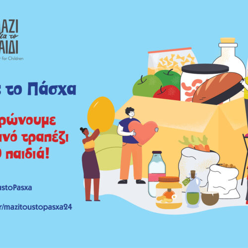 Φέτος το Πάσχα το Μαζί για το Παιδί μας προσκαλεί να ενώσουμε τις δυνάμεις μας και να προσφέρουμε γεύματα σε 600 παιδιά που φιλοξενούνται σε δομές παιδικής προστασίας σε διάφορες περιοχές της Ελλάδας. Οι δομές παιδικής προστασίας έχουν αυξημένες ανάγκες και αντιμετωπίζουν πολλές προκλήσεις. Η αύξηση των τιμών στα βασικά αγαθά έχει δυσκολέψει περαιτέρω την […]
