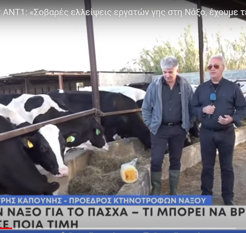 Μεγάλη είναι η έλλειψη εργατών γης στη Νάξο, πρόβλημα που ανέδειξε ο Πρόεδρος της Ένωσης Αγροτικών Συνεταιρισμών Νάξου, Δημήτρης Καπούνης, μιλώντας ζωντανά από το νησί μας στην εκπομπή «Στούντιο με θέα» του ΑΝΤ1. Αρχικά, ο Δ. Καπούνης ρωτήθηκε για τις ετοιμασίες του νησιού μας για να υποδεχθεί τους τουρίστες του Πάσχα. «Η Νάξος είναι έτοιμη […]