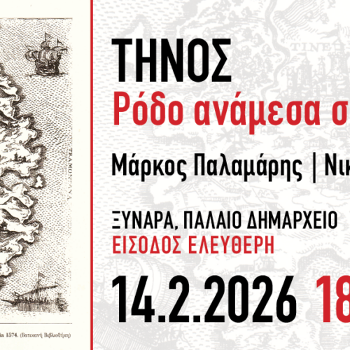 Τήνος: Ρόδο ανάμεσα στ’ αγκάθια 14/2, στις 18:00 Ξυνάρα, Παλαιό Δημαρχείο Ανάμεσα σε νησιά που χαρακτηρίστηκαν στην ιστορία ως ταραχώδη, επισφαλή ή εκτεθειμένα στην πειρατεία, η Τήνος καταγράφεται ως καλλιεργημένη, εύτακτη και ασφαλής. Έτσι γεννιέται στη γλώσσα της εποχής μια εικόνα που δεν χρειάζεται επίσημη σφραγίδα: ένα Ρόδο ανάμεσα στ’ αγκάθια. Μια μεταφορά […]