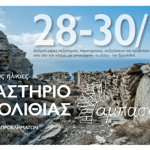Η Αμπασάδα διοργανώνει άλλο ένα Εργαστήριο Ξερολιθιάς, αυτή τη φορά στο πλαίσιο του «Έτους Ξερολιθιάς» με θέμα «Ξερολιθιά και Εκπαίδευση». Να θυμίσουμε ότι με το ίδιο θέμα η Αμπασάδα έχει διοργανώσει έναν «Μήνα Ξερολιθιάς» (Νοέμβριος 2023) και μια «Εβδομάδα Ξερολιθιάς» (Νοέμβριος 2024). Εν αναμονή του μεγάλου Εργαστηρίου Ξερολιθιάς μας τον Μάιο, η Αμπασάδα […]