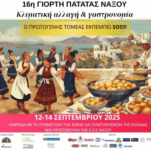 Το ραντεβού για το μεγαλύτερο γαστρονομικό event του Αιγαίου είναι το Σάββατο 13 Σεπτεμβρίου, στην περιοχή Κάπαρες της Αγίας Άννας. Είναι η 16η Γιορτή Πατάτας Νάξου, η εμβληματική εκδήλωση που διοργανώνει η Ένωση Αγροτικών Συνεταιρισμών (Ε.Α.Σ.) Νάξου υπό την αιγίδα της ΕΘ.Ε.Α.Σ. (Εθνική Ένωση Αγροτικών Συνεταιρισμών). Στη μεγάλη αυτή γιορτή με άρωμα Αιγαίου πρωταγωνιστεί […]