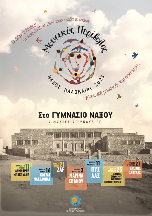 Ένα καλοκαίρι γεμάτο τέχνη, παράδοση και αυθεντικές στιγμές στη Νάξο και τις Μικρές Κυκλάδες Ο Δήμος Νάξου και Μικρών Κυκλάδων, σε συνεργασία με πολιτιστικούς συλλόγους φορείς, παρουσιάζει το καλοκαιρινό πρόγραμμα εκδηλώσεων, ένα πολύχρωμο μωσαϊκό από συναυλίες, θεατρικές παραστάσεις, αφηγήσεις μύθων και παραμυθιών, παραδοσιακά πανηγύρια, εκθέσεις, βιβλιοπαρουσιάσεις και δράσεις για παιδιά και οικογένειες. Από τον «Μουσικό […]