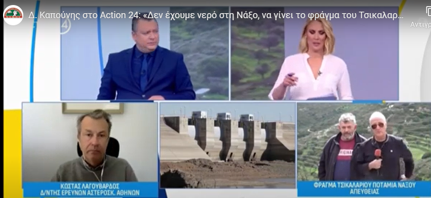 Το τεράστιο πρόβλημα λειψυδρίας που αντιμετωπίζει η Νάξος ανέδειξαν, στον «αέρα» της εκπομπής «Action Τώρα» του Action 24, ο Πρόεδρος της Ένωσης Αγροτικών Συνεταιρισμών Νάξου, Δημήτρης Καπούνης και ο Ναξιώτης κτηνοτρόφος και Πρόεδρος του Αγροτικού Συνεταιρισμού Γαλανάδου, Στέλιος Βαθρακοκοίλης.
